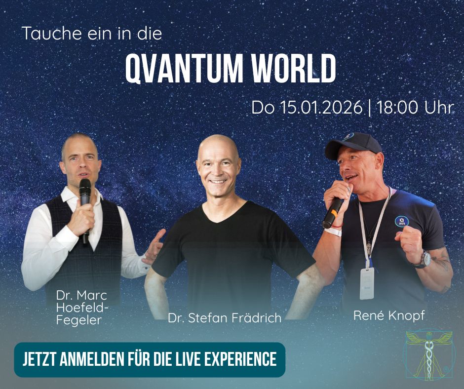 In diesem interaktiven Live-Webinar mit Dr. Stefan Frädrich erhältst du exklusive Einblicke in die QVANTUM World – eine innovative Verbindung aus Bewusstsein, Gesundheit und Business.