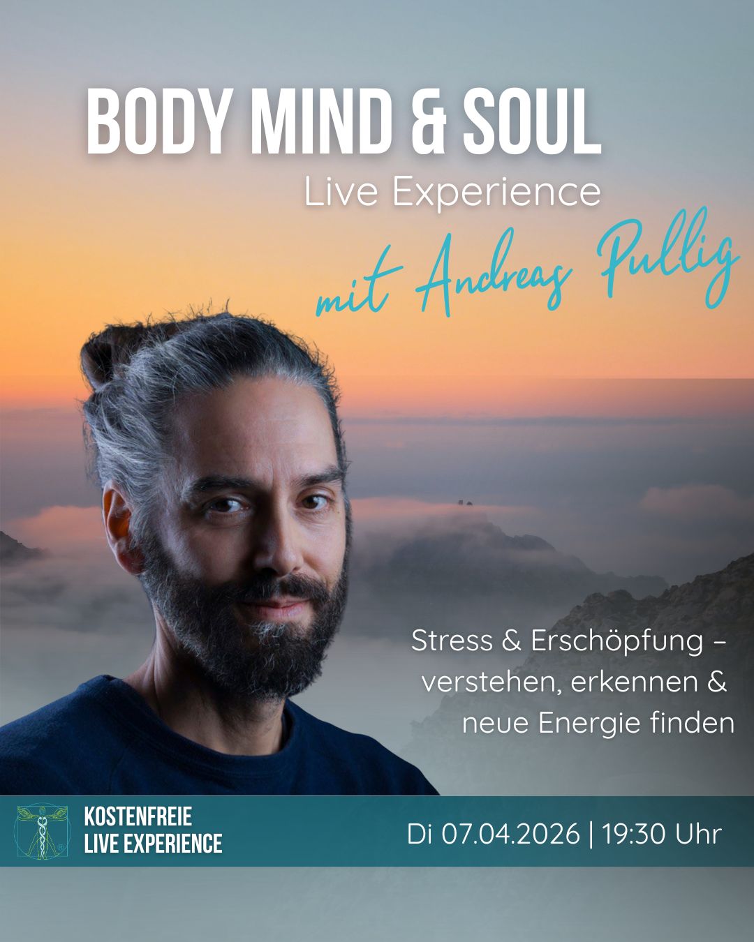 In dieser Live Experience spricht Dr. Andreas Pullig über die Ursachen von Stress und Erschöpfung, wie sie entstehen und welche Wege es gibt, wieder mehr Energie und innere Ruhe zu finden.